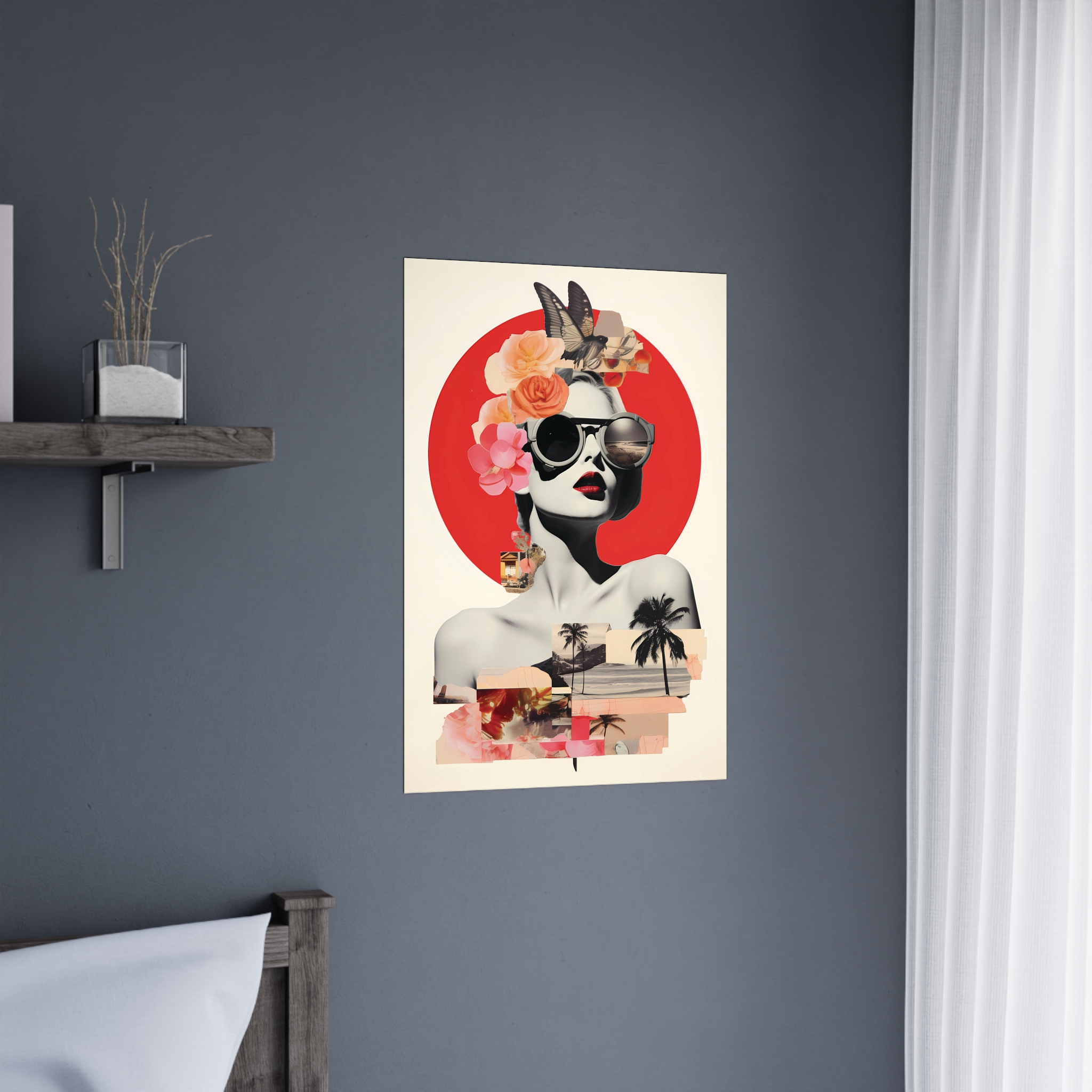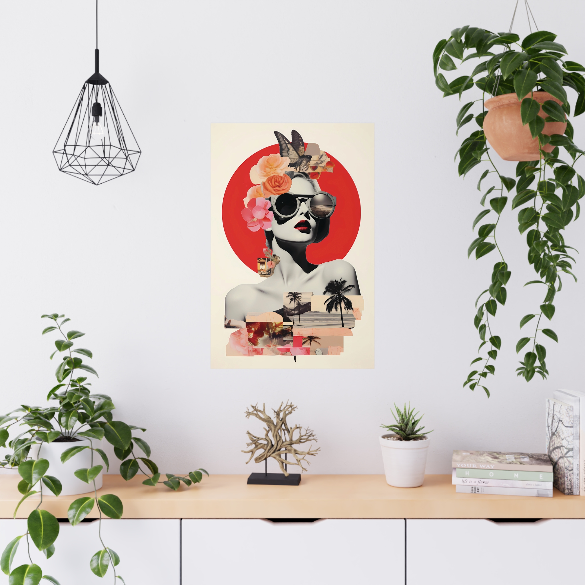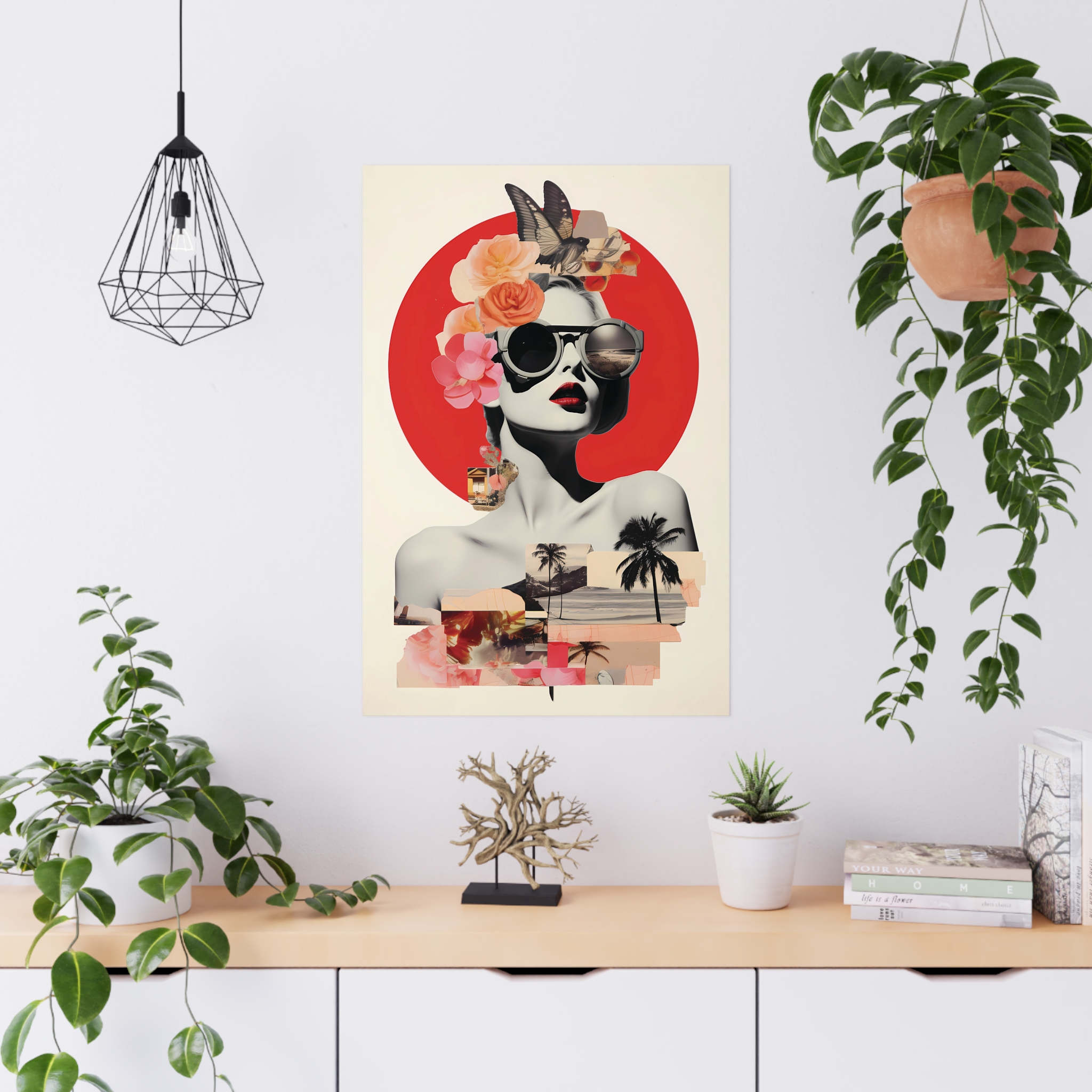 Laat je meevoeren naar zonovergoten stranden en retro vibes met Sunset State of Mind. Deze poster mixt tropische dromen met vintage coolness – denk aan palmbomen, old school zonnebrillen en een knallende rode zon op de achtergrond. Perfect voor iedereen die houdt van summer moods en een vleugje nostalgie in z’n interieur. Hang ‘m op in je woonkamer, studio of slaapkamer en geef je muur instant karakter.